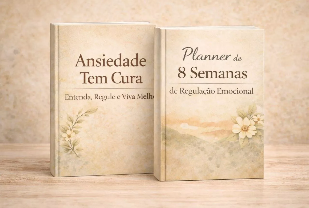 Com o e-Book Ansiedade Tem Cura, aprenda técnicas de regulação emocional para aplicar no dia a dia, no seu ritmo e sem culpa. Receba um Planner de 8 Semanas de Regulação Emocional para te ajudar a organizar pensamentos, emoções e autocuidado. Descubra um caminho possível para viver com mais calma, clareza e equilíbrio.